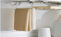 通过热风烘干方式对抹布和砧板进行杀菌。餐具烘干库内可直接收纳和烘干洗完的餐具。