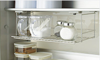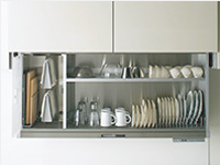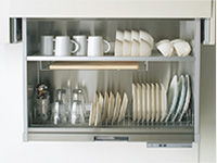 通过热风烘干方式对抹布和砧板进行杀菌。餐具烘干库内可直接收纳和烘干洗完的餐具。