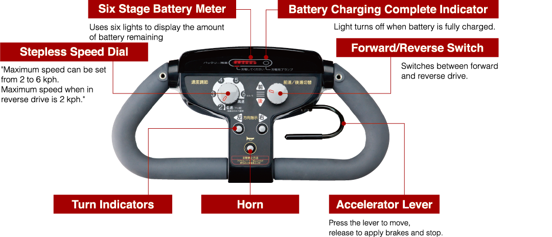 Achieves a tight turning radius of 1,250 mm thanks to a compact body just 590 mm in width and 1,110 mm in length.
