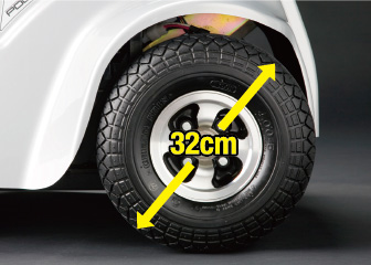 32 cm diameter tires. In addition to improving mobility and travel performance, air tires are also available, creating a luxurious feel while driving.
